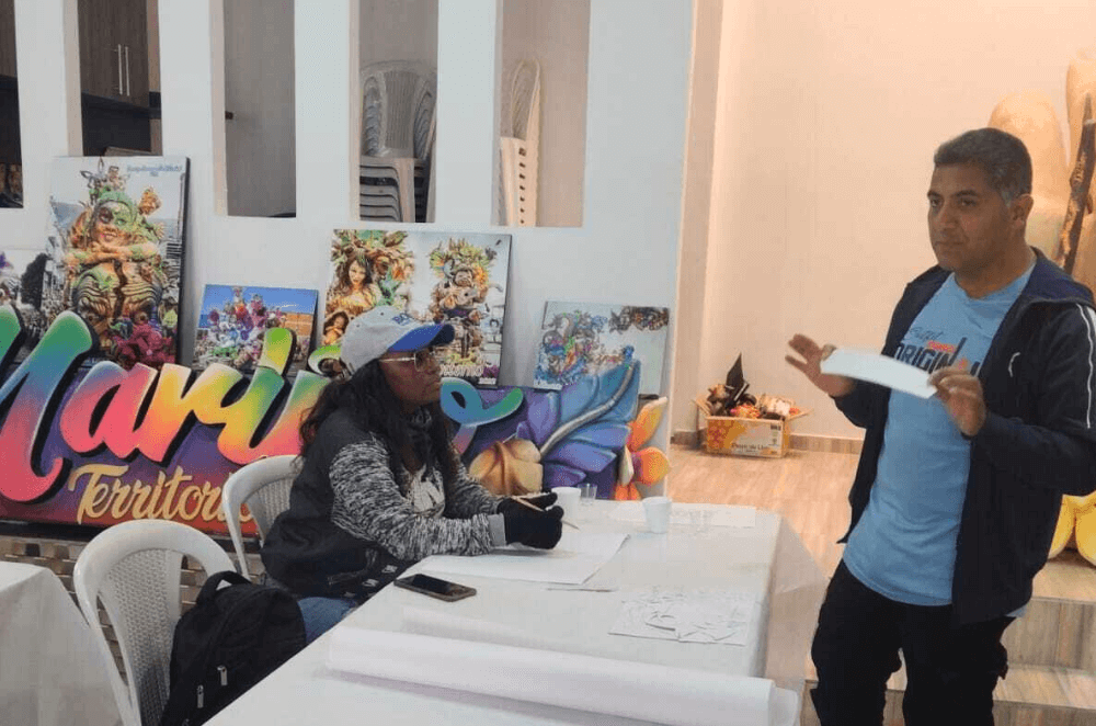 Este intercambio se dio con el objetivo de fortalecer el manejo de técnicas plásticas para la realización de las balsadas que hace la organización AMEAP durante la celebración de las fiestas en honor a la Virgen del Carmen.